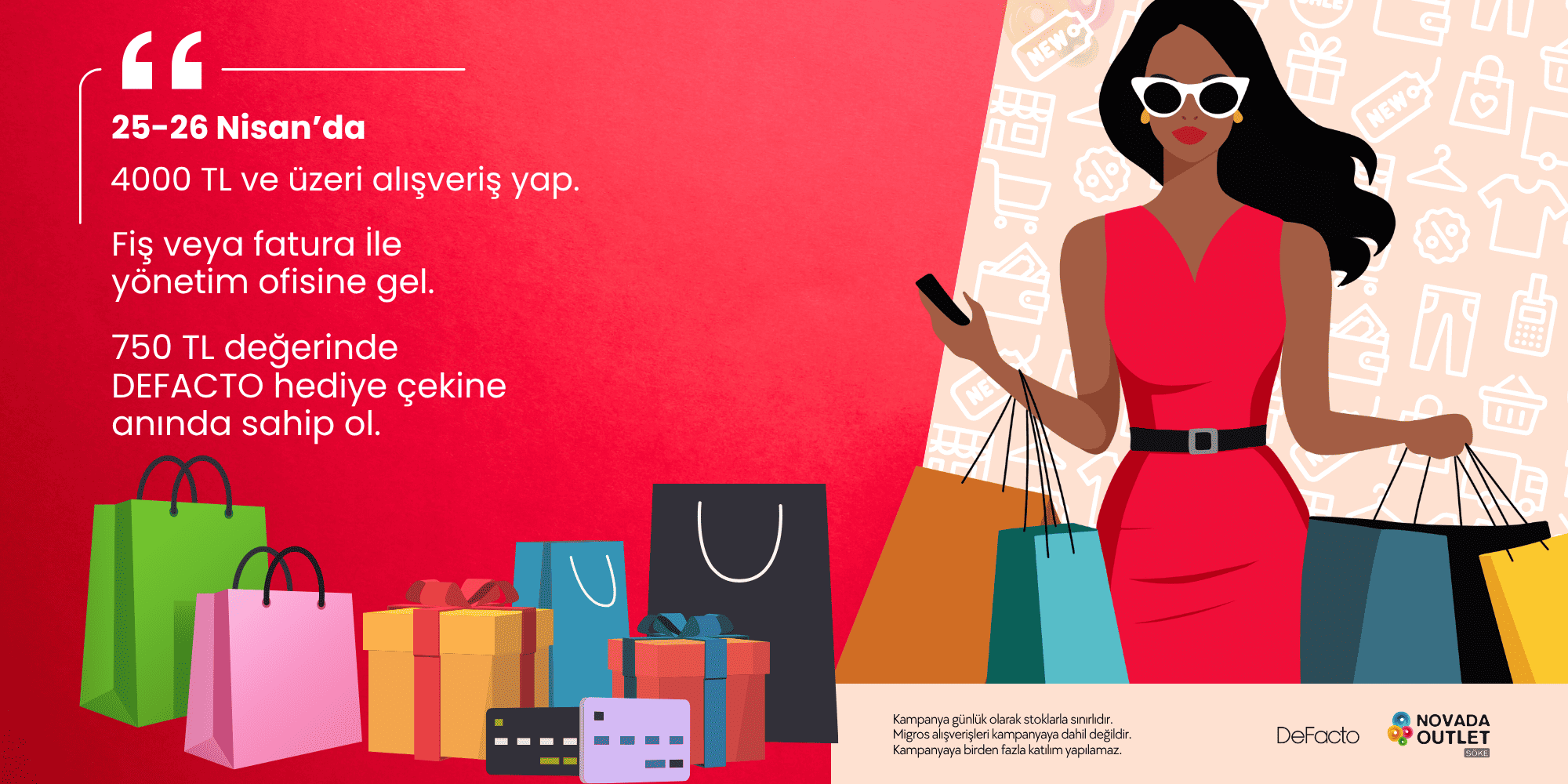 25-26 Nisan Tarihlerinde 4000 TL ve Üzeri Alışveriş Yaparak Fiş veya Faturalarıyla Yönetim Ofisine Gelen Kişiler 750 TL Değerinde Defacto Hediye Çekine Anında Sahip Oluyor.